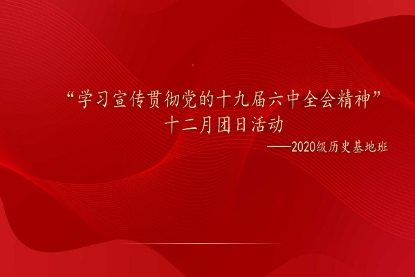 (通讯员 李昊 宋格非)为让支部成员在党的百年奋斗成就中增强自信,从党的历史经验中汲取智慧,英国365集团2020级历史基地班于12月8日晚线上组织开展“学习宣传贯彻党的十九届六中全会精神”十二月团日活动,团支书李昊主持活动,全班同学参加此次活动。