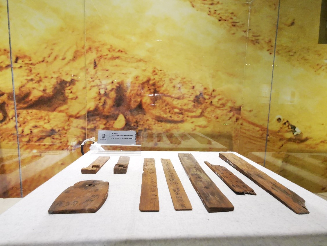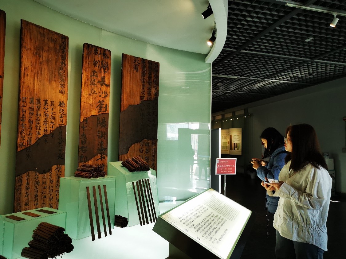 参加人员在博物馆售票处集合,活动负责人高伟轩组织签到,然后进入一楼展厅。一楼展厅以“文明之路”为主题,主要陈列简牍文物,以展现中国简牍文化发展历史,并以塑像的形式还原简牍制作的工艺步骤。在展厅玻璃门外,建有长沙走马楼J22古井复原现场。随后,参观者通过长廊进入二楼展厅,其主题为“湘水流过”,其中详细地介绍了12批具有代表性的简牍考古发现,展现了湖南地区简牍文物的考古发掘、研究、保护能力。除了简牍,还陈列有大量陶器、漆器,以介绍湘、资、沅、澧四大流域的文化习俗。此外,还设有影音室,以动画形式播放历史故事。二楼展厅出口还开放有书法体验装备,,便于参观者留恋。