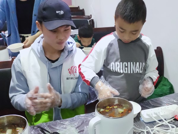 随后就进入了活动的制作环节,志愿者先给小朋友发放了制作藕粉梨干果羹的食材和工具,详细介绍了藕粉梨干果羹的制作方法。小朋友们在制作过程里热情高涨,使整个制作过程都处在轻松有趣的氛围之下,志愿者在辅助小朋友制作的过程中也十分满足。
