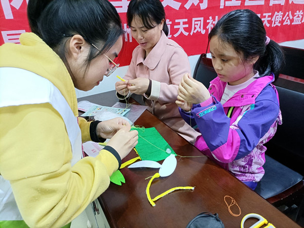 志愿者刘慧娇通过幻灯片连连看与猜猜看的形式引入了当期活动主题--维生素A。随后与志愿者们一起带领儿童进行小游戏,即儿童佩戴眼罩并轮流进行跑道通关。以这种形式体验夜盲症患者的不便,增强儿童对补充维生素A的认知,以及预防夜盲症的重要性。随后,志愿者对维生素A的功能进行了科普与总结。最后由志愿者们陪伴儿童进行了仿真蔬菜DIY,儿童参与程度都很积极,做出了小巧可爱的胡萝卜。