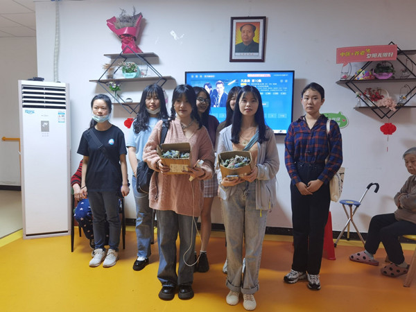 上午的活动开始之前,各社团负责人在江边食堂为大家准备好了粽子叶,以及各种食材的清洗和摆放。会员到场签到之后,在理事的指导下开始包粽子,各组会员粽子不尽相同,但都包含了对老人的满满的关心。最后,绘心民俗社理事长舒柳与食尚协会理事长卢小凡将会员的粽子全部收集起来,在里面选取了适合送给老人的粽子,其他的粽子在食堂的帮助下蒸熟,在午餐时会员可自行领取。卢小凡带领报名的志愿者前往同欣善孝堂将上午为老人准备的粽子送给老人。最后,在善孝堂的社工帮助下,志愿者们为老人们表演了节目,给老人们带去了欢乐。