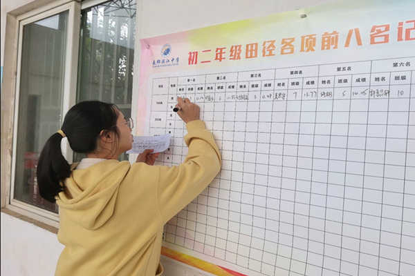运动会进行时,每个班级组成一个方阵迈着整齐的步伐向主席台走去,喊出班级口号,展示着班级风采。初高中年级组分别表演了啦啦操、足球秀、手势舞、舞龙舞狮,展现出长滨积极向上的学子风貌和特色的体育文化。随后,运动会按照比赛项目安排有序地进行,实习队员纷纷走上自己的岗位,主要包括检录组、美工组、铅球裁判组、集体项目裁判组、纪检保卫卫生组等,秉持着以学生的安全第一、公平公开公正的原则参与到运动会之中,此外还协助班主任管理班级纪律,维持班级秩序。