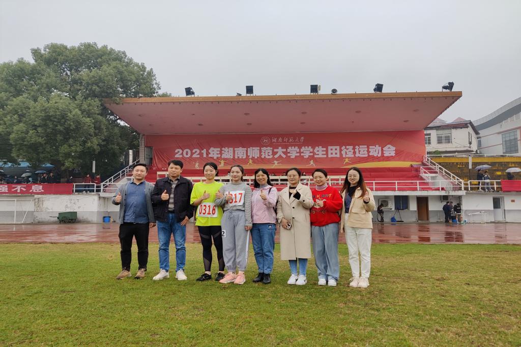 田径赛场上,历文院的运动员们不惧风雨,拼尽全力,本着“团结,协作,拼搏,更快,更高,更强”的体育精神,赛出了风采,赛出了水平,赛出了风格。我院陈蔚蓝勇夺女子一百米跨栏第一名和女子跳高第二名;李杰娥获得女子一百米跨栏第六名。在校运会过程中,历文院各职能部门分工明确,各司其职,各尽其责,确保校运会平稳、有序地进行。后勤人员提前为参赛运动员准备好所有需要的物品,陪护人员进入田径场随时关注着运动员的身体状况并为运动员提供及时的帮助,宣传人员用手中的相机记录下运动员在赛场上拼搏的精彩瞬间。历文院党委书记孔春辉,党委副书记贺慧星,学工办主任陈敏,团委书记陈卓君,学工办老师周冲、李青到场慰问鼓励参赛运动员,对比赛情况进行了解并对校运会期间的工作进行了指导。