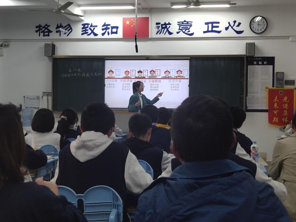 两节公开课授课内容都为《清朝前中期的鼎盛与危机》。两位主讲人的立意是“盛世下的危机”,其中邵青以清朝前中期乾纲独断的家法带来的盛世与危机为主线,黄旭婷以戴逸先生的一段话为主线,从横向与纵向的对比把盛世和危机分开。这两堂课思路清晰、内容完整、与学生互动性强,展示了实习队在长沙外国语学校两个月来的实习成果。