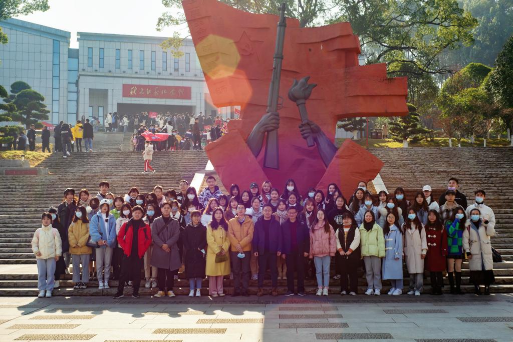 上午,同学们到达秋收起义会师纪念馆,参观了秋收起义文家市会师旧址、纪念馆和秋收广场。历史陈列馆建筑围绕“光辉起点”主题,通过“一场危机、一面旗帜、一条道路、一支军队、一部史诗”的展示线索布局,分为“序厅、高举新旗帜、开辟新道路、创建新军队、苦难辉煌”五个部分,尽显秋收起义红色文化底蕴,同学们紧跟讲解员的步伐,了解了秋收起义的背景、经过和影响,进一步体会到了老革命家的奉献精神,帮助同学们重温了党的历史。在讲解员的介绍下,同学们对于秋收起义有了更深的认识。
