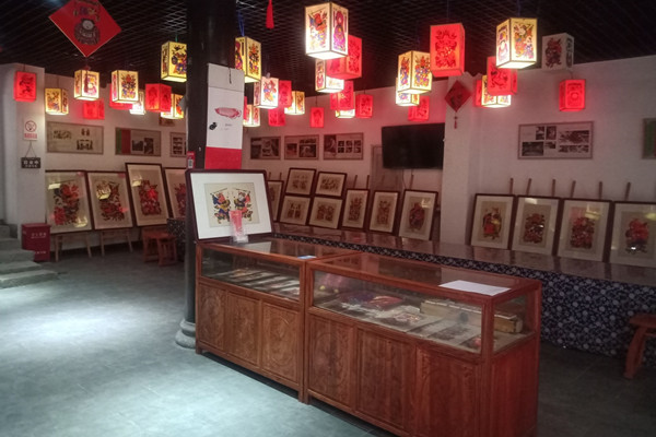 滩头年画的工艺非常复杂,在造纸、雕版和制作之下还有很多细小环节。我们了解到,在尹冬香制作过程中就包含二十多道小的环节,考察组实地参观了刷纸粉制作、刷纸、套印、晾干、装裱等过程,真切体验到了滩头年画制作的繁杂和要求之高。目前,滩头年画的营销市场和手段是比较有限的,只采用线上线下结合的形式出售,而且用途单一,主要用于送礼和装饰。面临的困难也很艰巨,主要原因是年轻人对滩头年画并没有正确的认识,年画的文化与技艺无人以继,尹冬香还向我们介绍了目前作坊传承人的情况。