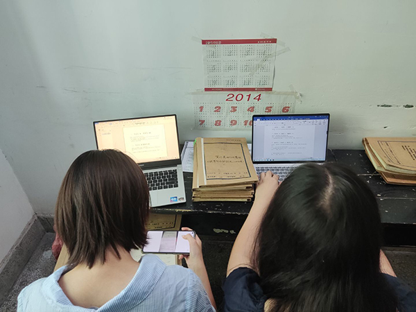 7月14日下午,实践团第二次前往资兴市档案馆查找资料。此次查档由梁拓帆、傅一晨、吴晓莉、刘畅和杨灿五名实践团成员参加。口述史组的梁拓帆、刘畅、杨灿三名成员查找了民国档案和红色革命相关历史档案,档案与之前了解到的红色革命历史相互印证,为报告的撰写提供了更丰富的第一手史料。调研组的傅一晨、吴晓莉两名成员负责查找1956年以来的林业局相关的档案,从内容丰富庞杂的档案中,查找到造林、林业生产和森林火灾等相关历史数据,并做了记录,为后续调研报告提供准确的数据支撑。