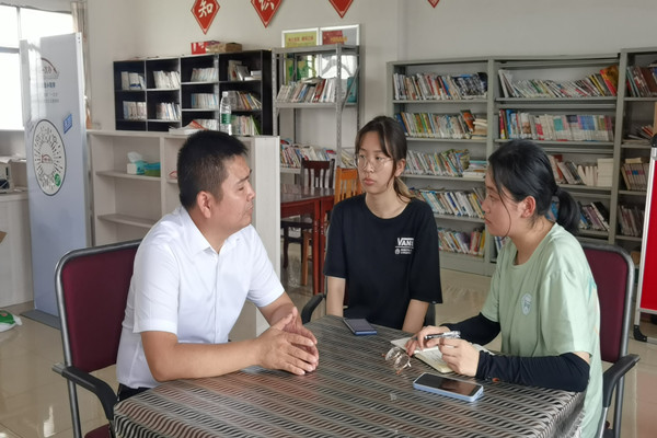 图为泉奇酒店老板娘与实践队员讲述创业经历