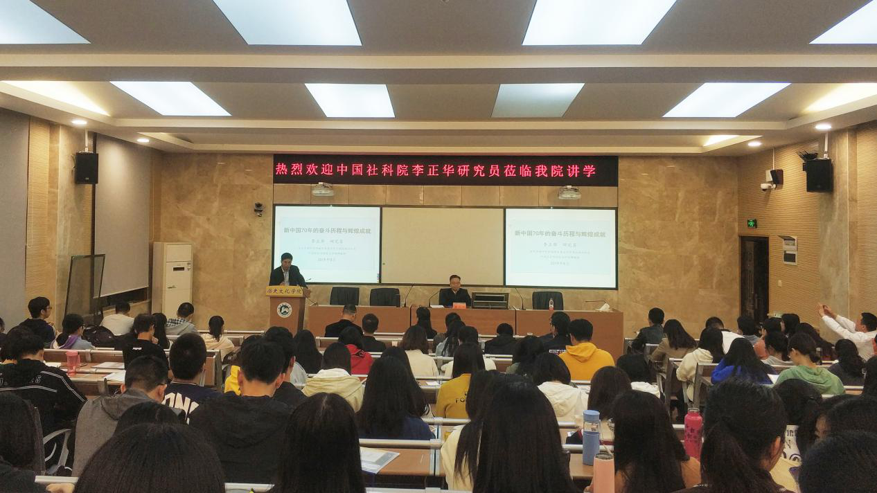 (通讯员 尹赛璊)10月23日(星期三)晚19:00,中国社会科学院当代中国研究所副所长兼当代中国出版社社长、研究员李正华老师受邀至英国365集团203报告厅,开展了题为“新中国70年的光辉历程与重大成就”的学术讲座,历文院副院长刘利民主持了此次讲座。院长钟声、院党委书记孔春辉及部分师生参加了此次讲座。