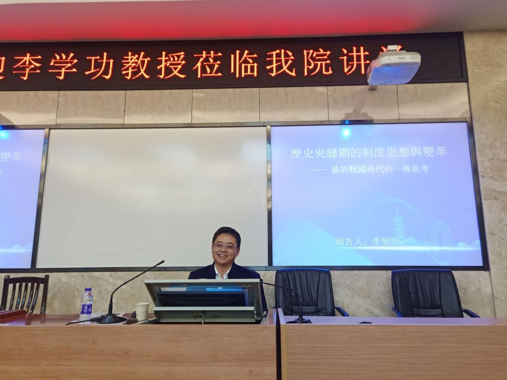 讲座中,李学功教授引用顾炎武在《日知录》中的表述,指出战国时期作为中国历史三大夹缝期之一,是中国思想文化的第一个高速发展的原创期,构建出较为成熟中华民族文化基底。这一夹缝期中,商周时代以礼乐制度为核心的王朝体制土崩瓦解,以封建制为核心的皇朝制度开始确立,对于我国古代文化制度建设具有举足轻重的奠基作用。李教授站在社会制度变革视角以“大发展、大变革、大纷争、大融合、大机会、大觉醒”对这一时期基本特点进行概括,认为战国时期的变革乃是革故鼎新之大变革,并通过商鞅变法、常例承袭与变例改造、诸子文化的出现等实际例证对这一时期制度变革的彻底性及对后世的奠基性进行有力说明。