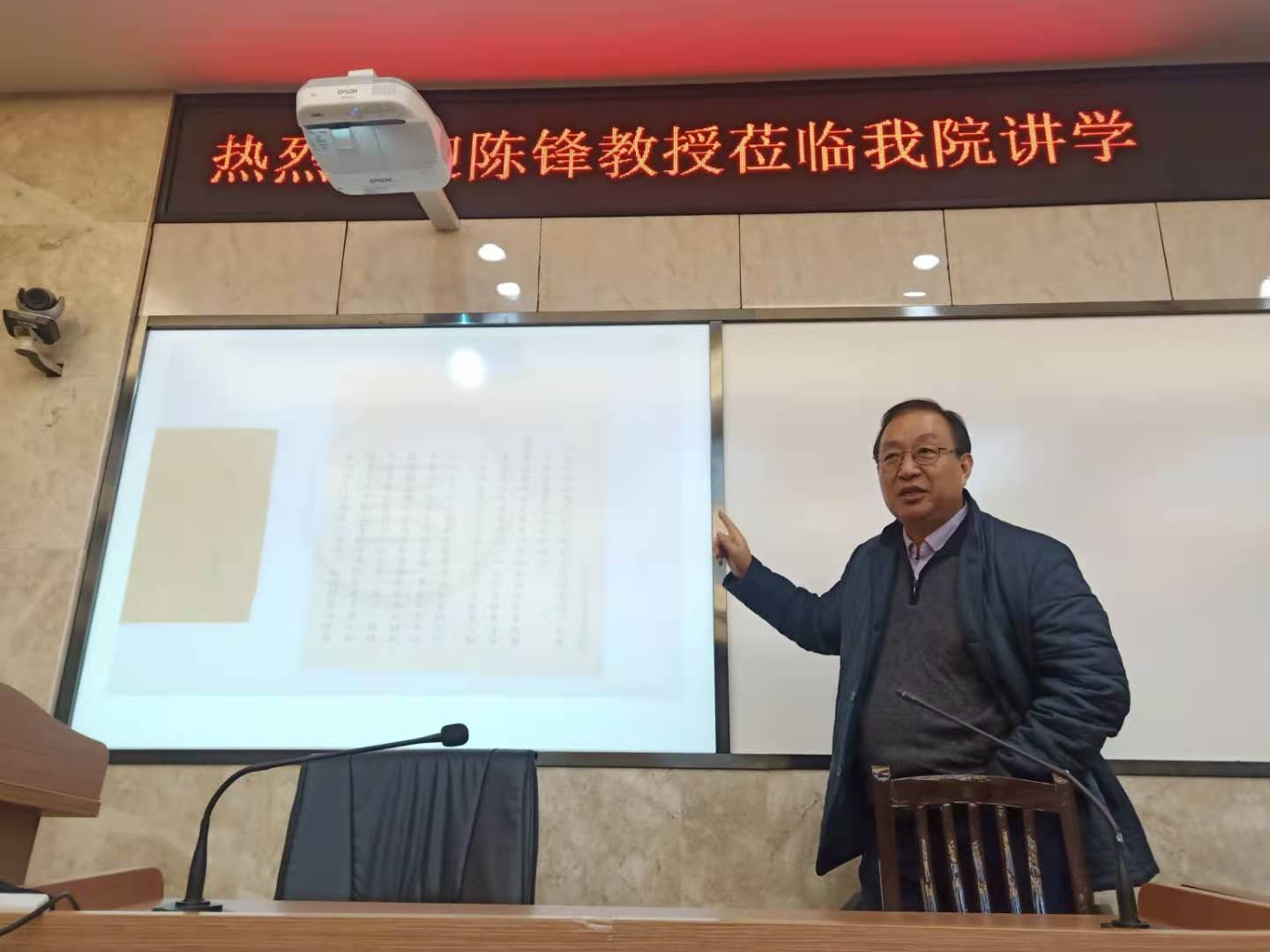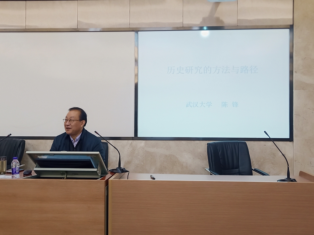 讲座前,陈锋教授首先以“什么是‘历史’”及“为什么要研究历史”为题引,通过理论与史实相结合的方式明瞭历史学家应对现存史料中反映出的历史在辨伪求真的基础上加入自己的思考,在客观现实环境中以求真求实的态度进行分析总结。