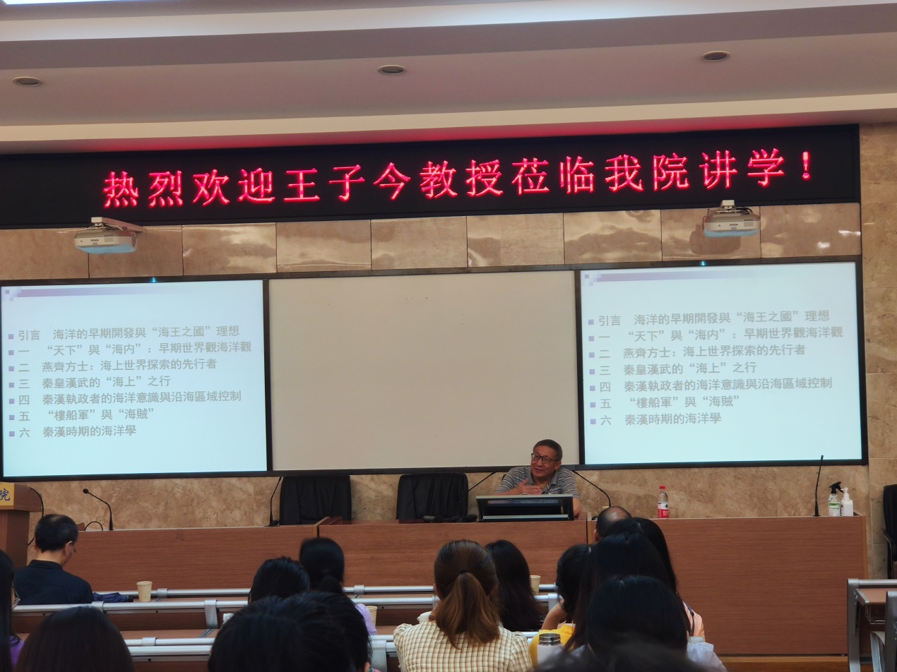 (通讯员陈思虹)6月3日晚19时,“林增平学术讲堂”在英国365集团203学术报告厅举行。中国人民大学一级教授、明德学院院长、博士生导师王子今教授受邀开展题为“秦汉海洋文化研究”的讲座。讲座由邹水杰教授主持,我院师生积极与会并认真聆听。