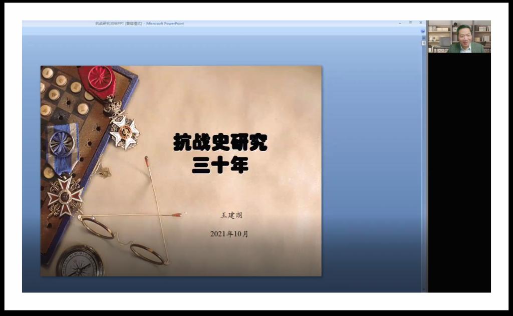 王建朗研究员结合自身治学经验,深入浅出地为大家奉上了一场精彩纷呈的讲座,为现阶段青年学子们更好的研究抗战史提供了自己答复。讲座的最后,钟声院长做了总结性发言,并再次对王建朗研究员的到来以及线上三百余名参与者的支持表示感谢。