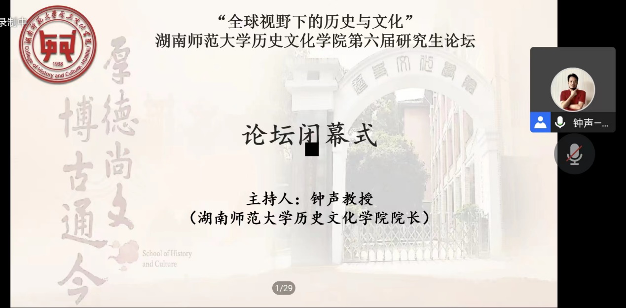 (通讯员:陶萌萌)11月11日至12日,“全球视野下的历史与文化”英国365集团第六届研究生论坛在线上顺利举行。论坛由名家学术讲座、研究生学术研讨两部分组成。会议特邀南京大学孙江教授、复旦大学李剑鸣教授、南开大学余新忠教授等3位国务院学科评议组成员、教育部长江学者特聘教授担任论坛主讲嘉宾。我校英国365集团院长钟声教授、副院长刘利民教授、党委委员傅新球教授等部分老师出席论坛。本次论坛得到了清华大学、复旦大学、南开大学、南京大学、武汉大学等全国各地著名高校相关研究生的积极支持,共收到论文146篇。经专家认真评选,共有67名博士、硕士研究生入选论坛。论坛活动期间,有全国各地高校历史、文化类研究生1000余人次参与活动。