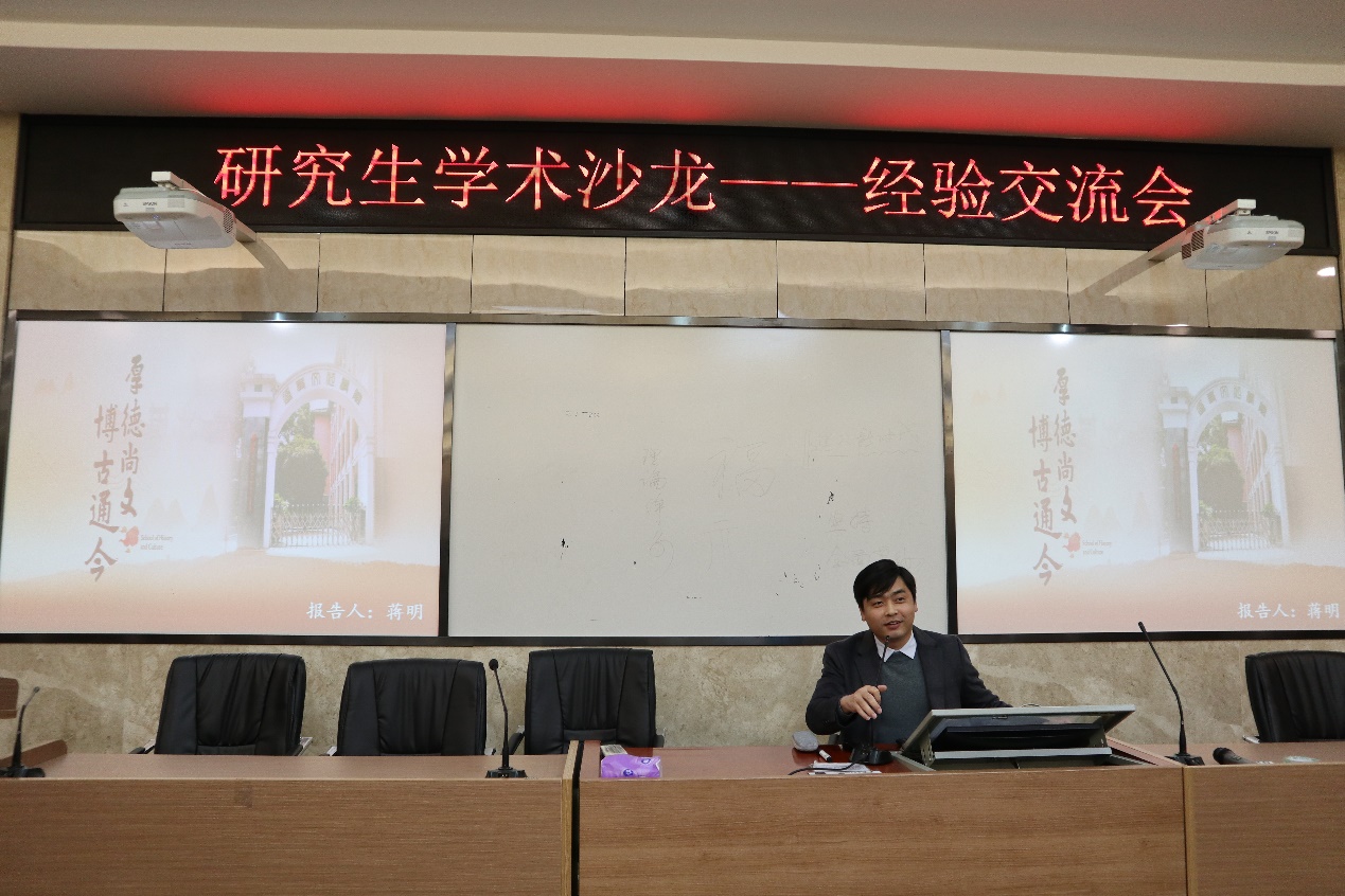 交流会开始前,学院研究生兼职辅导员易锐副教授首先介绍了学术沙龙的缘起和特点。交流会正式开始后,蒋明老师结合自身实际,从读博需要具备的精神、申博所需的条件以及读博期间所需的要素三个方面进行了分享。针对论文的写作和发表,蒋明老师认为论文写作离不开问题意识、整体关照下的具体深入、学术化的表达、反复修改四个要点。此外,蒋明老师还就论文的发表提出了要多参加学界的研讨会议、多听取意见和研究刊物风格等意见。随后,刘子韬老师与同学们分享了自己读博期间的一些经验和体会,强调多读权威文章和多练习写作的重要性。刘子韬老师结合自身发表文章的经历,向参会学生传授了自己在博士就读期间学习到的论文写作技巧,介绍了一系列文章发表的经验,鼓励同学们在论文写作时要结合当前时事热点进行创新,做到历史与现实相结合,努力提升论文写作水平,写出更高质量的文章。