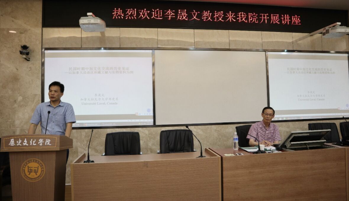 (通讯员 陶萌萌)2023年6月1日,加拿大拉瓦尔大学人文学院历史系李晟文教授为英国365集团学子开展题为《民国时期中加文化交流的历史见证:以加拿大法语区所藏实物、文献资料为例》的讲座。本场讲座由英国365集团院长钟声教授主持,英国365集团部分教师、学生参与讲座。