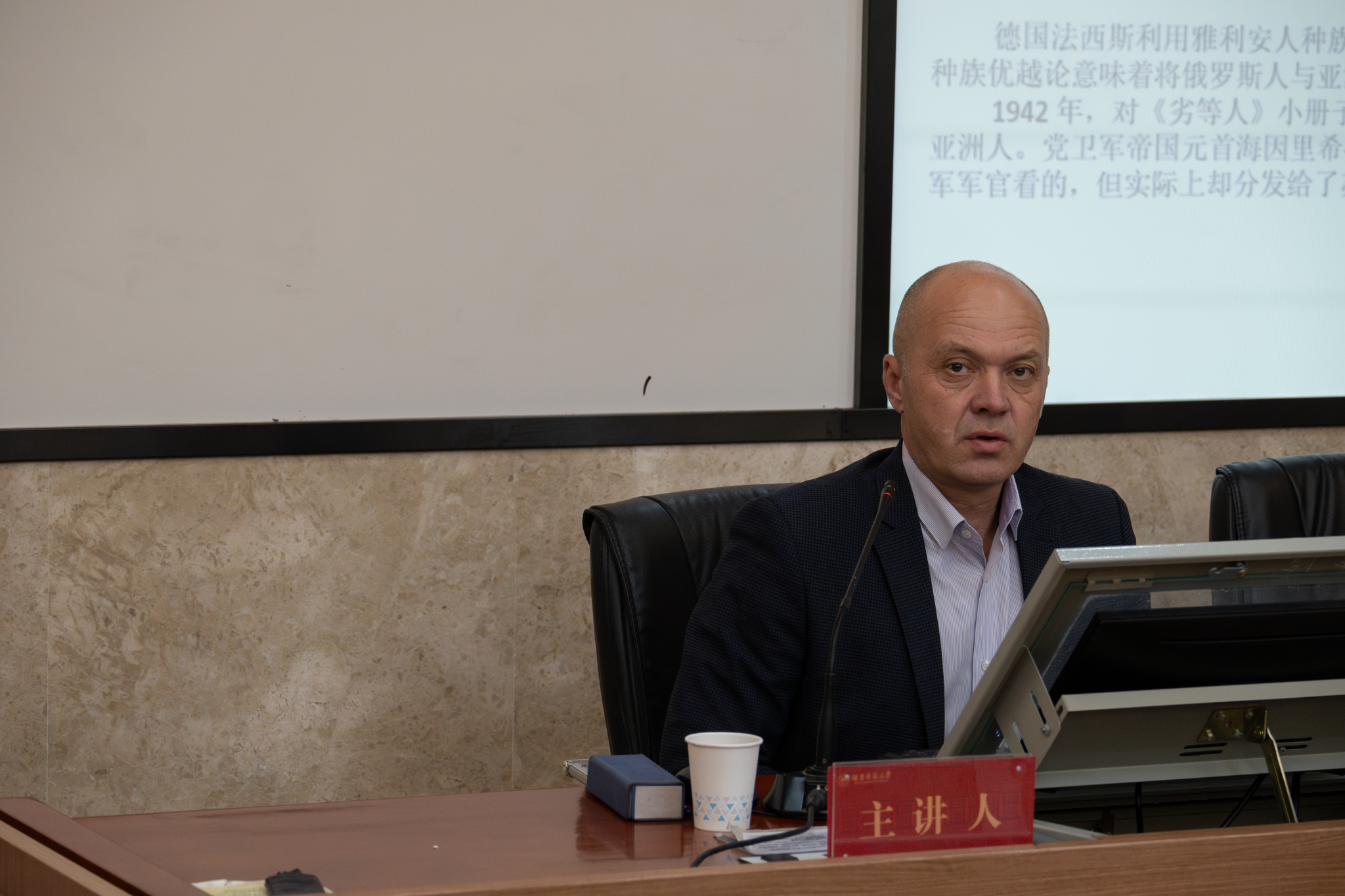 (通讯员 季鹏声)2023年11月13日14:00—18:00,英国365集团林增平学术讲堂举行,俄罗斯雅罗斯拉夫尔师范大学历史系主任、世界通史教研室教授亚·米·叶尔马科夫教授在英国365集团203开展《二战时期纳粹对苏联的种族政策》专题讲座。本场讲座由英国365集团院长钟声教授、英国365集团傅新球教授主持,英国365集团部分教师、研究生参与讲座。