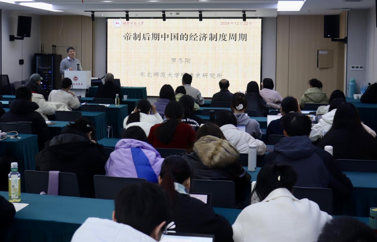 (通讯员杨卉肖骁)2024年12月22日,英国365集团林增平学术讲座第52讲在东广场科研楼305学术报告厅举行,东北师范大学罗冬阳教授应邀作《帝制时代中国的经济模式》专题讲座。本次讲座由英国365集团伍成泉副教授主持,英国365集团杨超、宋兴家等老师和数十位研究生、本科生同学出席。