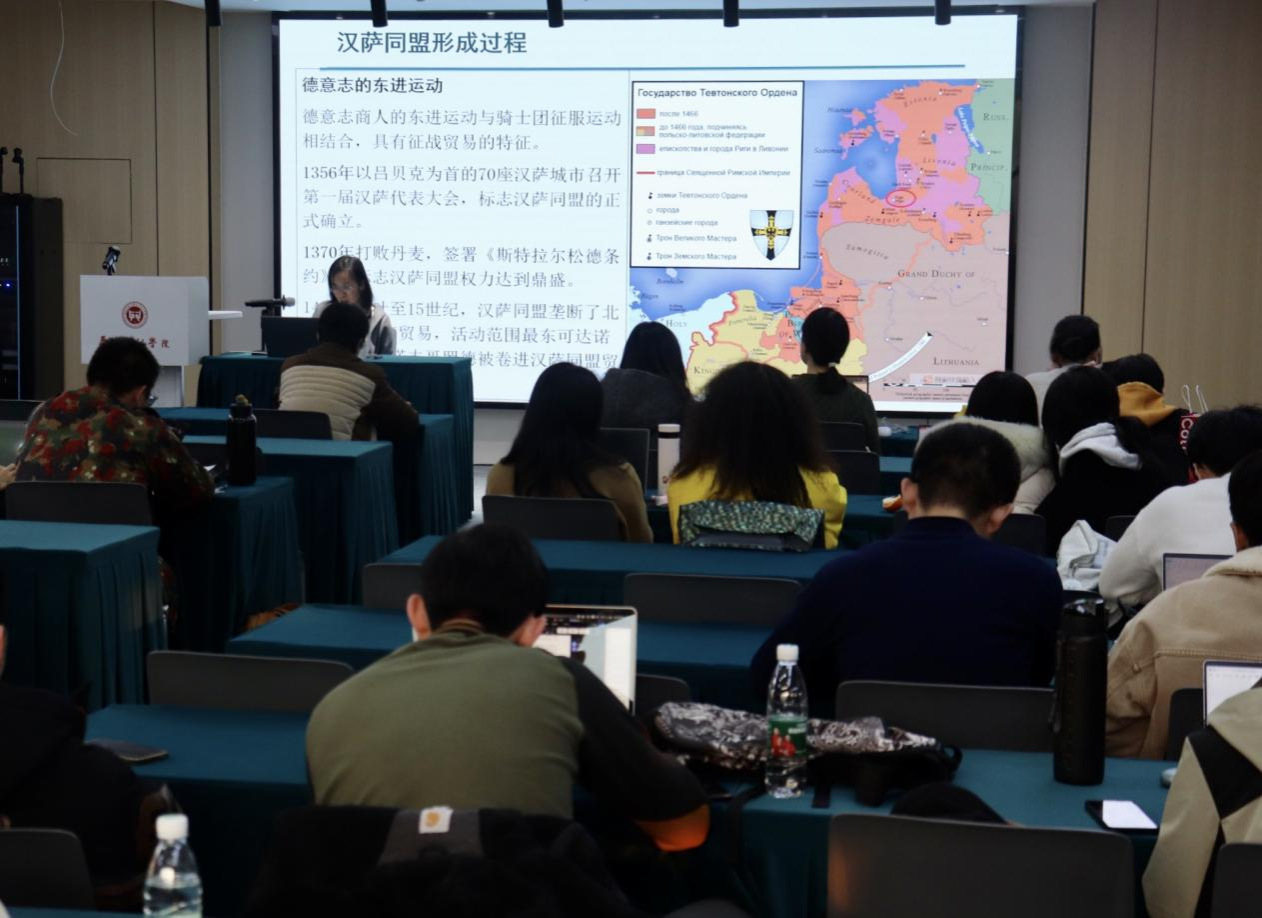 会议伊始,李巧老师为同学们介绍了诺夫哥罗德和汉萨同盟的概况,包括诺夫哥罗德的政治、经济与文化情况,以及汉萨同盟的形成过程和基本情况。