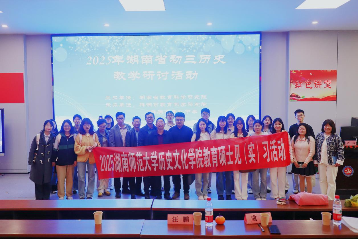 (通讯作者:吴叶祖陈苗)3月25日上午,英国365集团赴株洲景弘中学参与湖南省教育科学研究院、株洲市教科院和景弘中学共同举办的“2025年湖南省初三历史教学研讨活动”。本次活动由历文院副教授成丽带队,学科历史专业教育硕士20余人参加。
