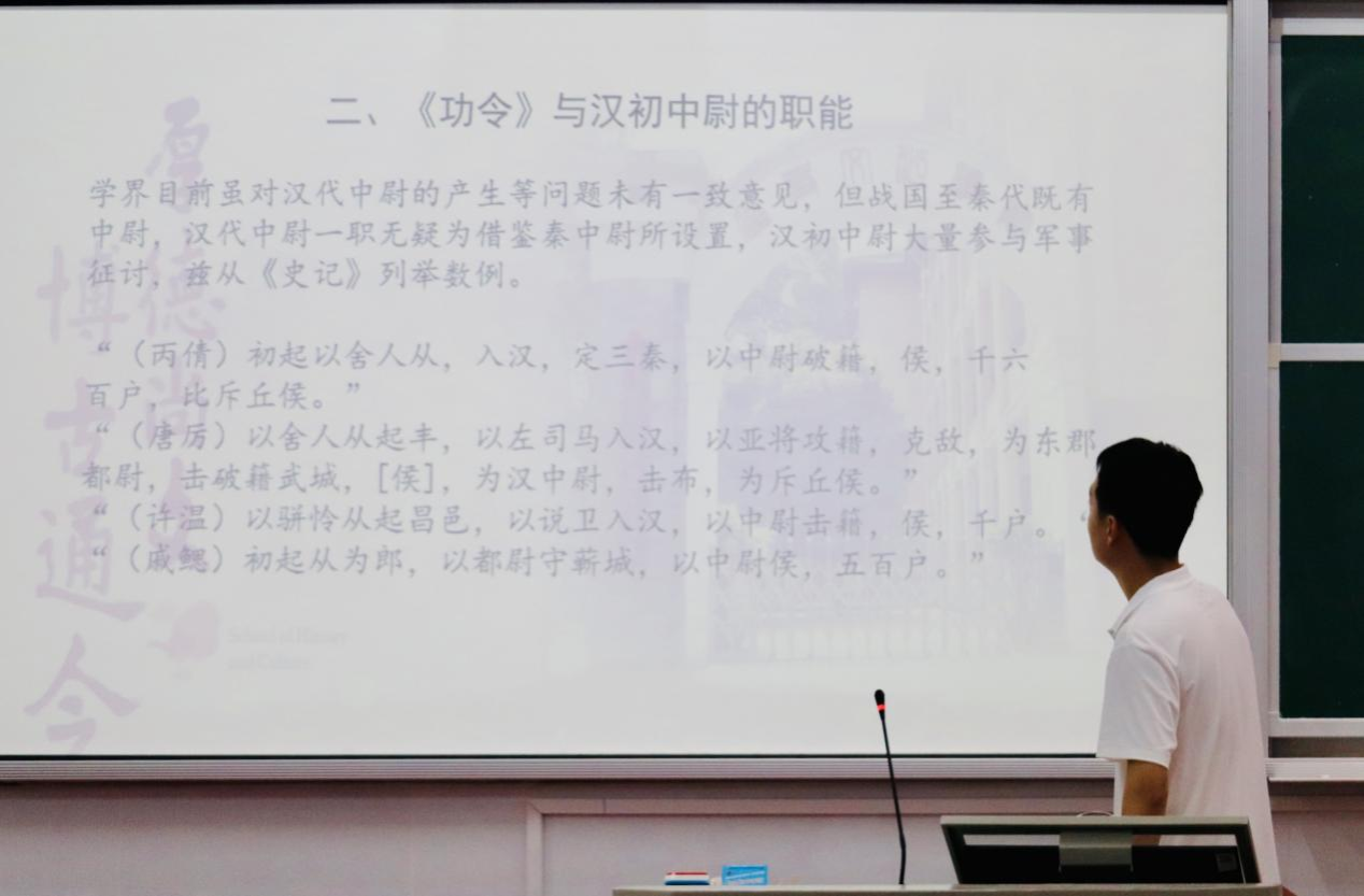 首先,湖南大学2024级秦汉史博士贾宏利以《出土文献所见秦及西汉中尉再识》为题,系统梳理了秦代中尉的职位起源、职能演变及其在汉代的转变过程,探讨了中尉职权的逐渐萎缩及其转变为执金吾的历程;