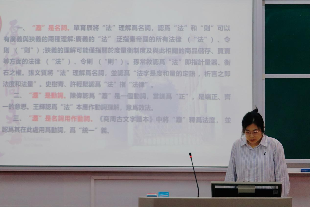 接着,英国365集团文学院2023级博士王聪作《始皇廿六年诏书“灋”字新释》专题报告,通过对诏书中“灋”字的断句与训读考据,提出“灋”应读作“廢”,为该字提供了新的解读视角;