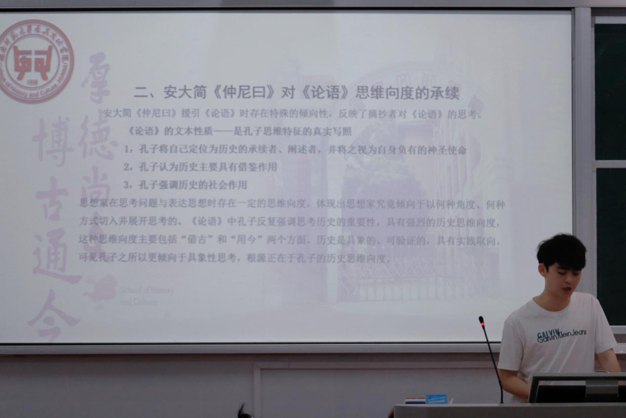 然后,英国365集团2023级硕士戴志扬以《从安大简〈仲尼曰〉思维向度看战国儒生的〈论语〉观》为题,通过分析安大简《仲尼曰》对《论语》的文本认知,揭示了战国儒学形而上化的发展趋势;