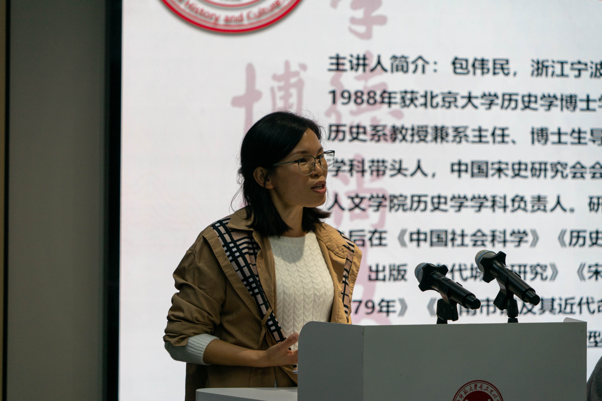 讲座由我院彭丽华老师主持。她简要介绍了包伟民教授的学术成就与研究领域,并代表我院师生对其莅临讲学表示诚挚欢迎与感谢。