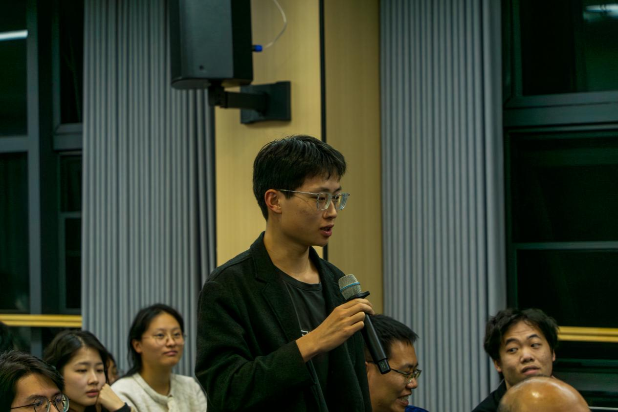 在随后的互动环节,同学们踊跃提问。同学们提出了“如何将古籍研究与现实生活紧密联系”、“如何反思学术研究中的‘汉学心态’”、“蒙古南下对宋代经济发展的影响”、“宋代奴婢制色彩淡化是否属于套用欧洲现代性经验”、“如何看待过度依赖西方理论这一现象”等问题。包老师一一回应,强调广泛阅读丰富知识储备对了解历史、从事历史研究的重要性,并呼吁本土学习、研究者在广泛了解、吸纳外界学术的基础上,应增强学术自信,立足中国历史经验与文化语境进行研究。