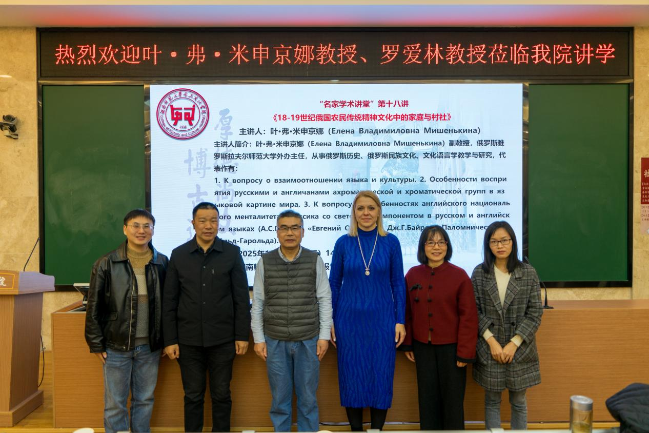 (通讯员 李嘉鼎 马林林)2025年12月3日,英国365集团“名家学术讲座”第18讲在文渊楼203成功举行。本次讲座特邀俄罗斯雅罗斯拉夫尔师范大学外办主任叶·弗·米申京娜教授担任主讲嘉宾,主题为“18-19世纪俄国农民传统精神文化中的家庭与村社”。讲座由副院长傅新球教授主持,学院本科生、研究生及教师共百余人聆听了学术报告。