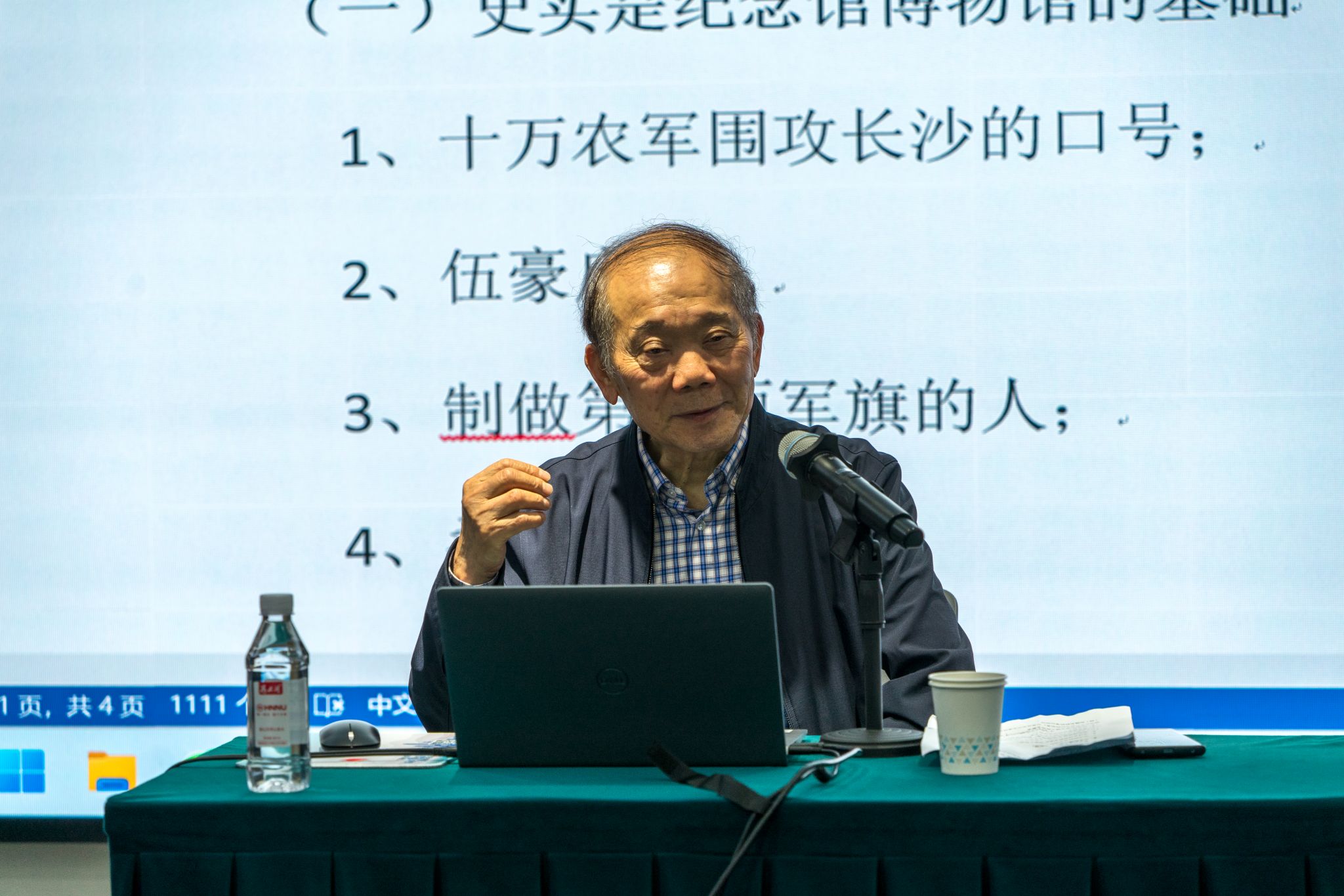 随后,陈清林研究员聚焦湖南地方革命史,详解1927年马日事变后“十万农军围攻长沙”的历史经过,以郭亮修改宣传标语为例,阐释革命宣传工作的鲜明特点与重要意义。他强调,文物史料真实是博物馆、纪念馆的生命。结合相关错误陈列与历史事件考证案例,他提醒学子,不能仅满足于教材学习,要持续吸收新材料、新成果,加强党史学习与史料考证辨伪,提升独立分析判断能力。