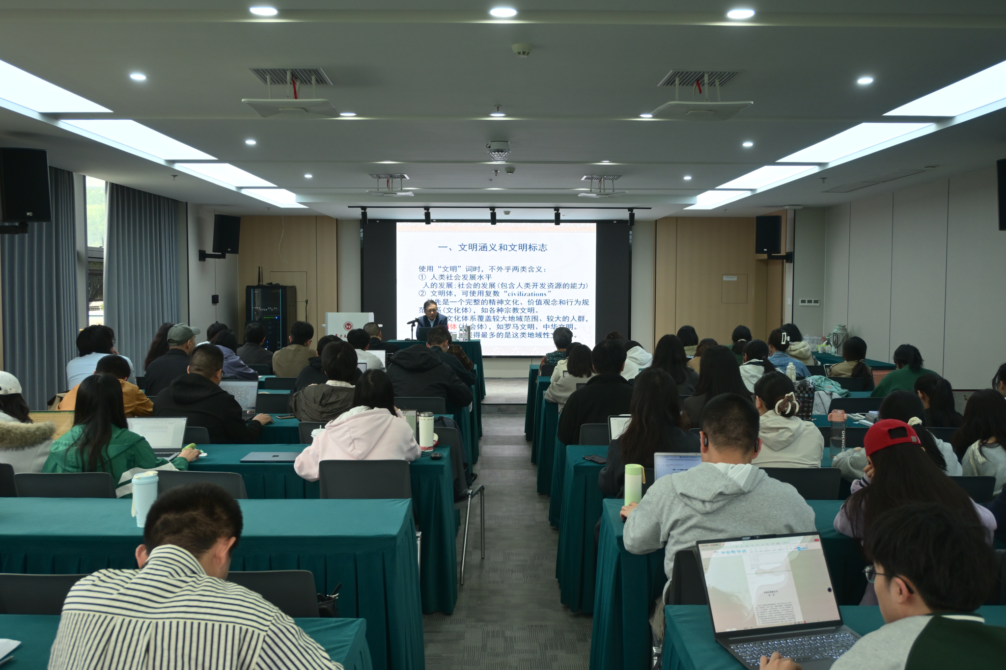 讲座伊始,刘景华教授从“什么是文明”这一核心问题切入,明确了“文明”兼具人类社会发展水平与具体文明体的两层内涵,并梳理了文字诞生、城市兴起等学界公认的文明形成标志。他深入剖析文明起源的逻辑,指出农业革命是文明诞生的前提,而河谷农业对集体协作的需求,才真正推动了以地缘为纽带的国家与文明产生,破解了早期农耕带与文明摇篮错位的学术疑问。同时,他从生产生活方式与文化心态两个维度,阐释了自然条件对文明多样化特征的塑造作用。在文明成长议题上,刘教授提出文明发展需处理好三个“面对”:面对传统要取其精华去其糟粕,面对他者文明要学会甄别取舍,面对时代要坚持更新创造。