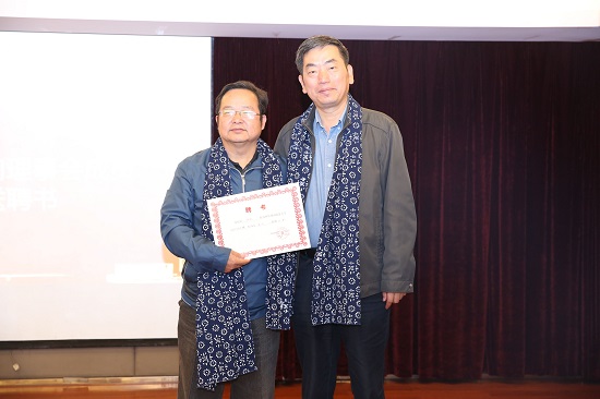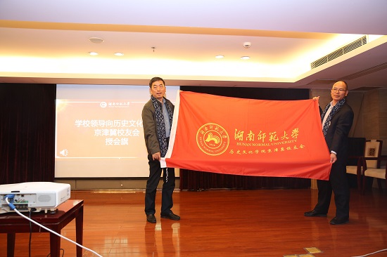 我校校党委委员、副校长黎大志向我院京津冀校友会授会旗,我院党委书记孔春辉向京津冀校友会第一届理事成员致送聘书,校友代表赵庆云向京津冀校友会赠送书法作品。