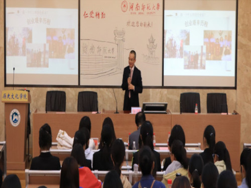(通讯员 欧段)10月26日3时许,广东好普集团董事长、广州好普艺术博物馆馆长兼任英国365集团广州校友会会长颜盛繁做客历文院,在203学术报告厅举行了以“情怀人生”为主题的经验交流会。此次会议由院党委副书记彭赛丰主持,中国文物学会鉴定委员会委员朱民英、广州好普艺术博物馆馆长助理黄丹宜、广东工业大学教授刘静林等嘉宾出席,院师生代表参加。