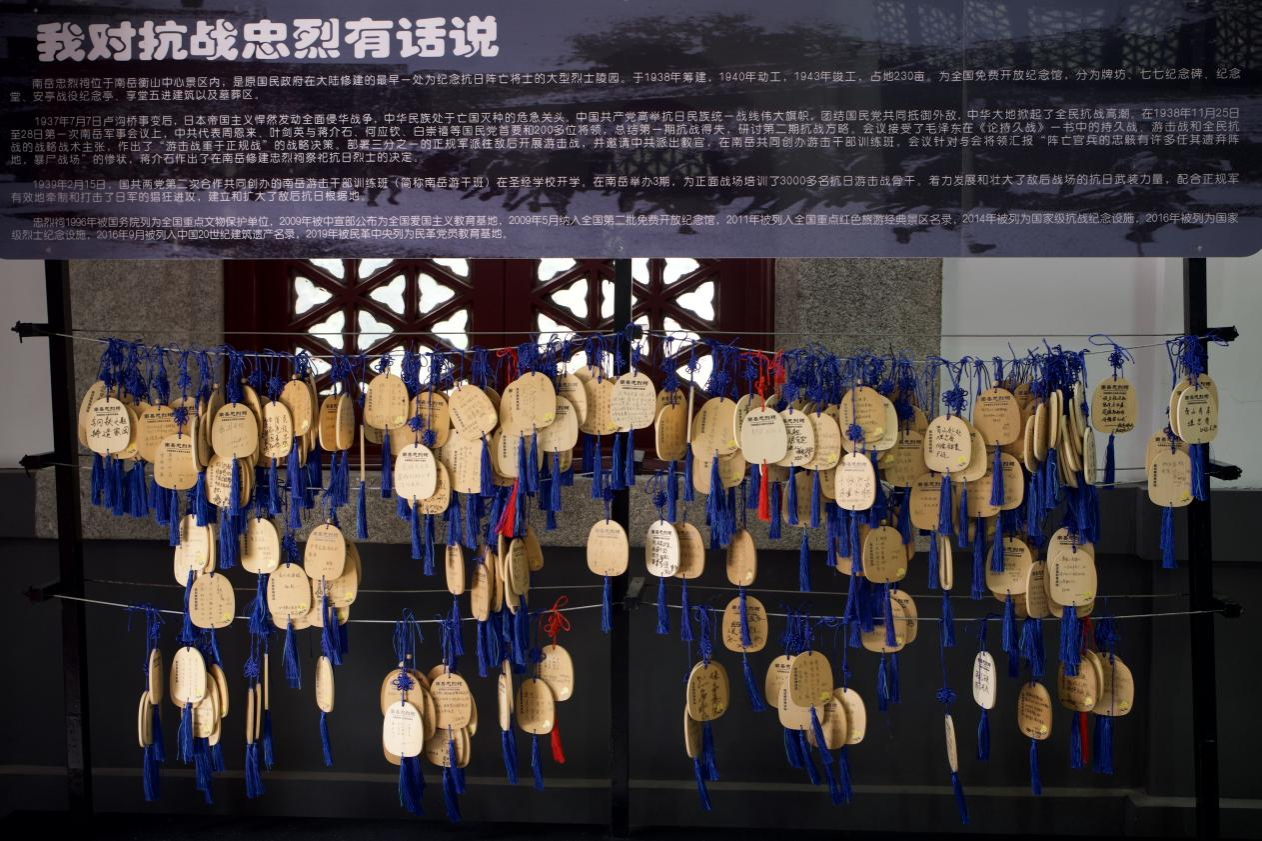 仲夏日炎,穿林徐行。实践团成员从镌刻着“南岳忠烈祠”的巍峨牌坊步入,纪念堂内碑石巍巍,庄严肃穆;详实的《南岳与抗战》展览生动再现游击干部训练班及军事会议的历史风云;登阶而行,堂后276级石阶象征着抗战牺牲的276名高级将领。祭祀核心的享堂内奉“抗日阵亡将士总神位”,佟麟阁、张自忠等将领的英勇事迹泐石镌碑,彪炳史册。在讲解员的组织下,实践团成员齐整肃立,一一献花,共同向抗战先烈三鞠躬,并写下对抗日英烈的肺腑之言,垂挂于享堂左侧的展示板上。而后,南岳忠烈祠管理所副所长聂德芳向实践团同学介绍了园区特色及所取得的工作成效,勉励我们进一步挖掘史料,对感兴趣的课题展开研究,为铭记抗战记忆,传承抗战精神贡献自己的力量。