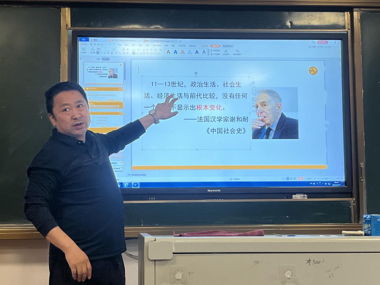 郭晨韵老师基于课件《辽宋夏金元的经济与社会》对教学目标、教学重难点、教学思路、教学问题等设置情况进行了汇报,并对公开课的表现进行了自我反思。高中历史组七位实习生依次从可塑性和问题两个角度进行听课评价。