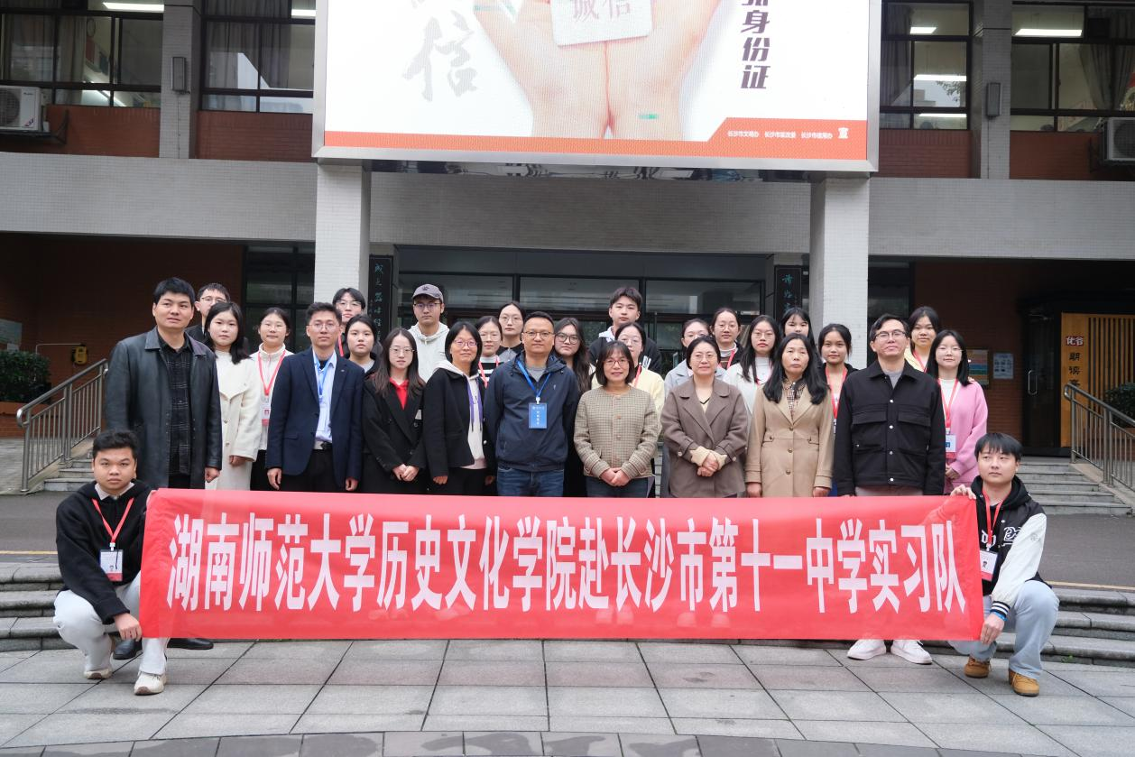 (通讯员唐杏方荣)11月19日上午,历文院赴长沙市第十一中学实习队于十一中惟实楼录播室举行公开课展示暨实习成果汇报大会。英国365集团副院长傅新球、指导老师朱晓章、王逸之、学工办老师李青、长沙市第十一中学教学副校长黄冬军,教育处主任易富奇、“龚宇历史名师工作室”首席名师龚宇、长沙市第十一中学历史基地负责人吴乙玲、历史教研组长邹丽平等出席此次活动。实习队全体队员参加此次活动。