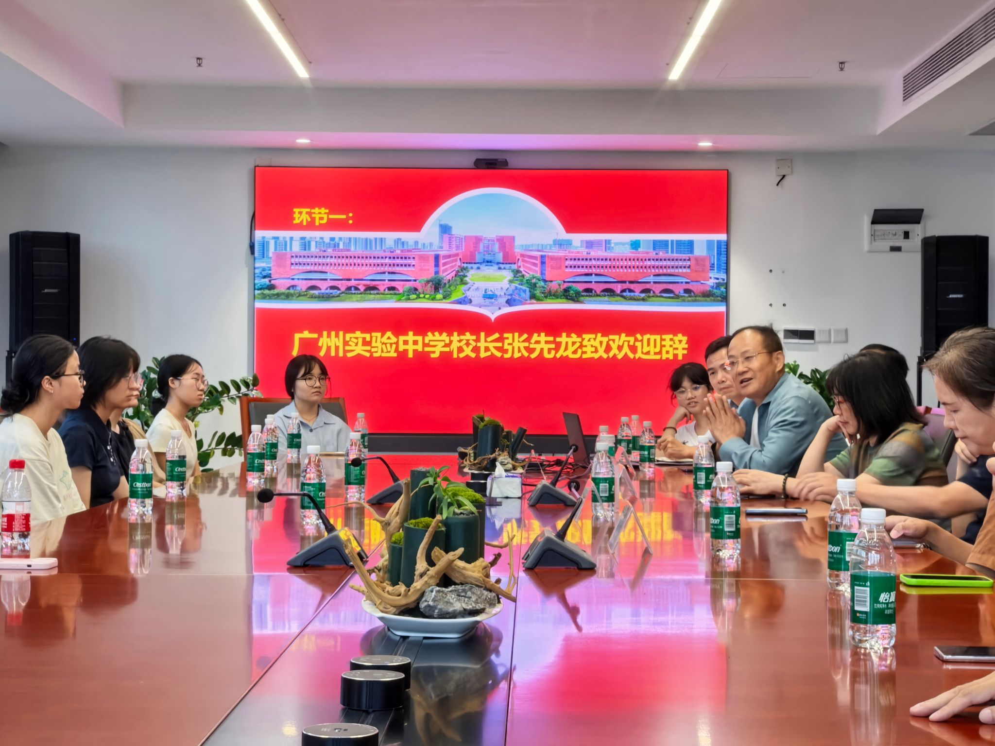 此次欢迎会由广州实验中学教务处主任黄观洪老师主持,张先龙校长、田程副校长、英国365集团马欣副书记以及傅新球副院长、实习老师代表朱美琳老师和全体实习生共同参与。