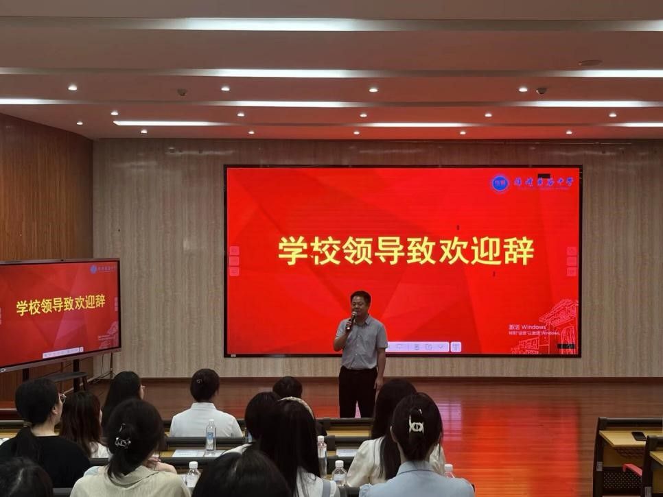 见面会于学校阶梯教室举行。雅礼麓谷中学校长邹文重首先致欢迎辞。邹校长表示,学校始终坚持用无私之心投身教育事业,为每个学生提供公平的成长平台。他期待实习生们在实践中深入体会教育工作的责任与使命,将理论知识转化为育人实践,在与学生的互动中感悟教育的真谛。最后,他再次对实习队的到来表示热烈欢迎,相信实习生们的青春活力将为校园注入新的生机,希望这段实习经历能成为大家教师生涯的美好开端。