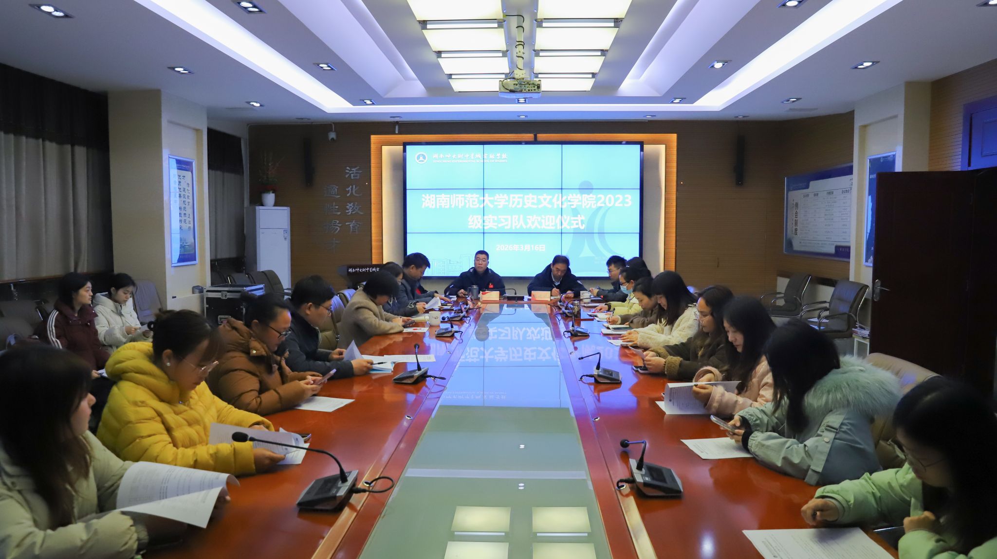 (通讯员 余欢 谭薇)3月16日上午,英国365集团第三实习队的22名实习生,在指导老师宋兴家、张君言的带领下,抵达师大附中星城实验学校开展教育实习工作。学校在综合楼二会议室举行见面会,校长叶越冬、课程教学中心主任杨智华、后勤保障中心主任李剑超及初二年级全体班主任老师出席会议,实习队全体队员参加。