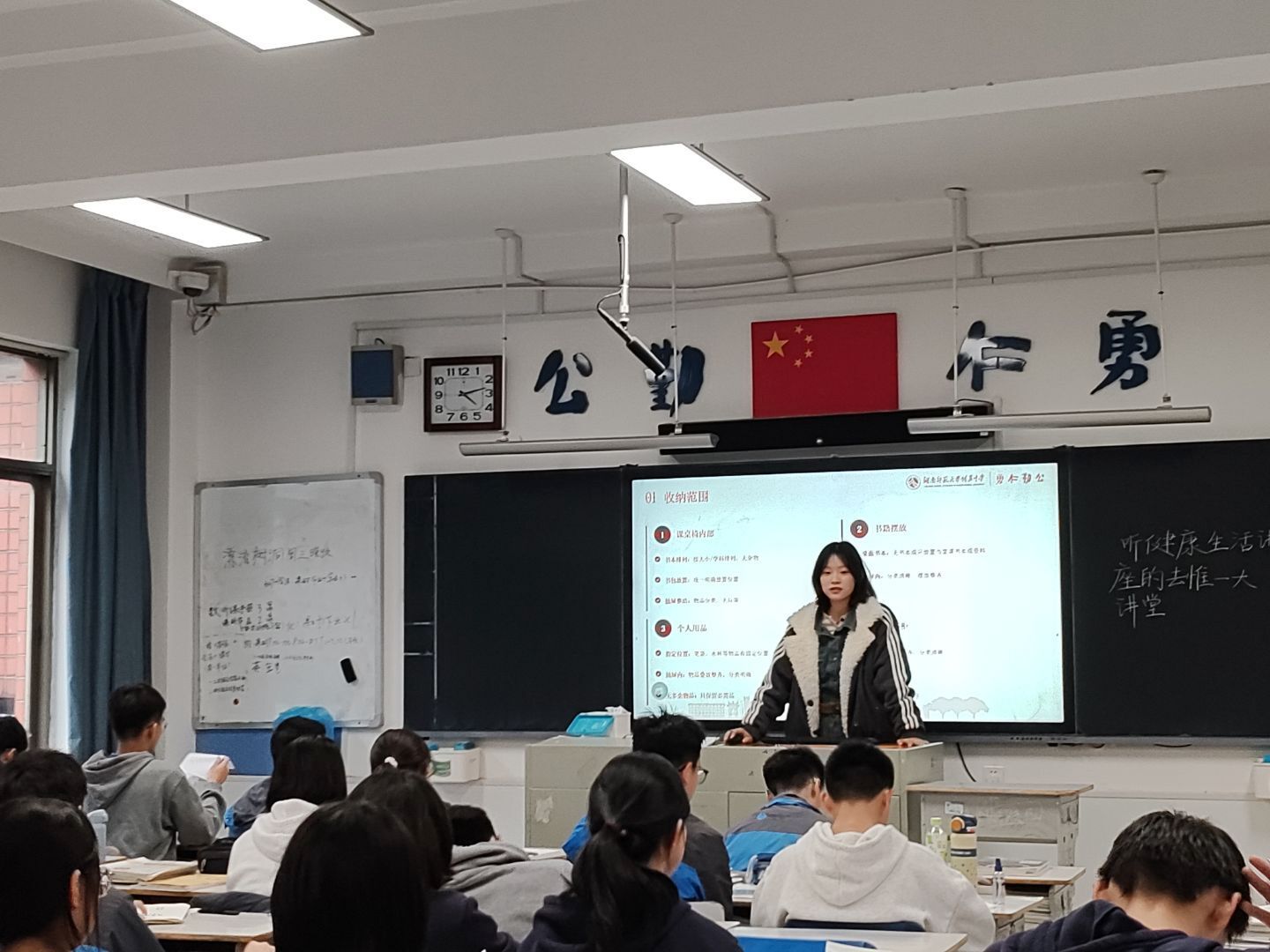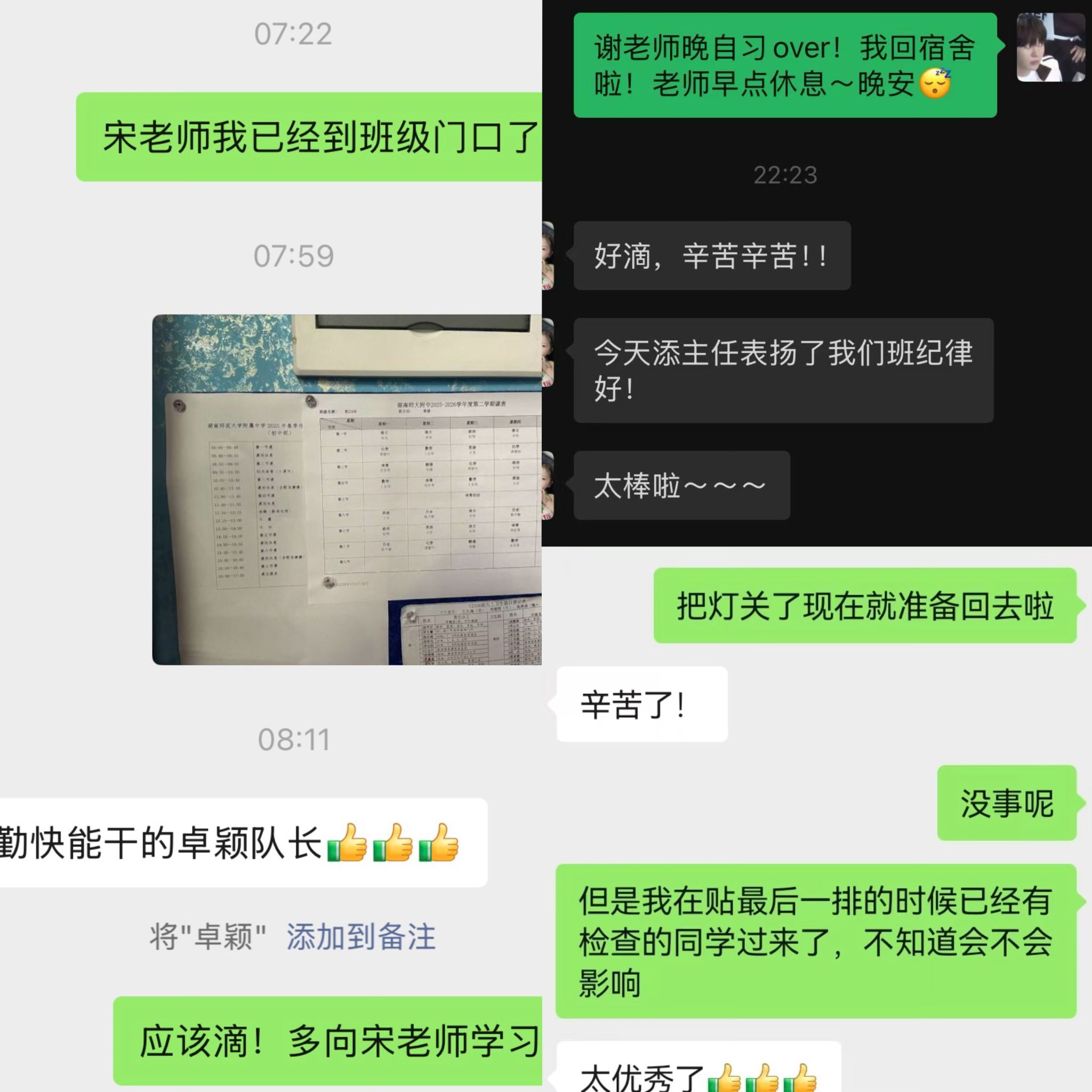 日常校园生活管理方面,实习队员全程跟进班级事务,重点配合指导教师做好跑操组织工作,从列队整队、纪律维护到节奏把控全程细致引导,助力班级形成整齐有序的跑操风貌。同时,队员们坚守早读、课间、晚自习等常规管理岗位,关注学生学习状态与行为习惯,在点滴日常中深化班级管理实践,拉近与学生的距离。