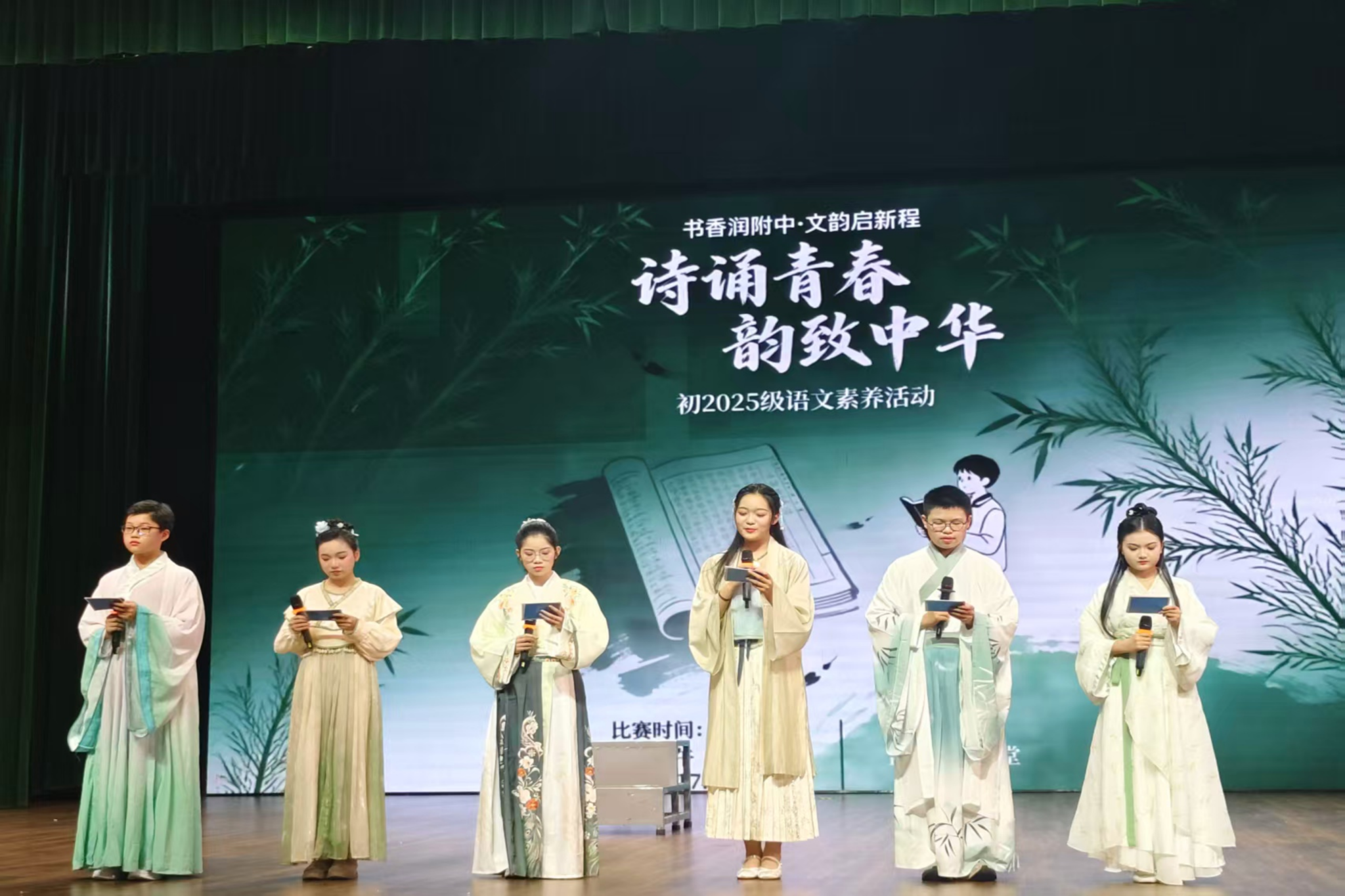 在活动组织过程中,实习队员积极协助指导老师推进全流程工作,组织学生有序参与经典诵读、古诗情景剧、歌舞表演等环节,引导学生在展演中感悟语言文字的独特魅力。活动开展期间,队员们全程负责现场秩序维护与流程衔接,保障各环节顺利推进。从前期筹备到现场执行,实习队员在实践中逐步提升了活动统筹与协调沟通能力。
