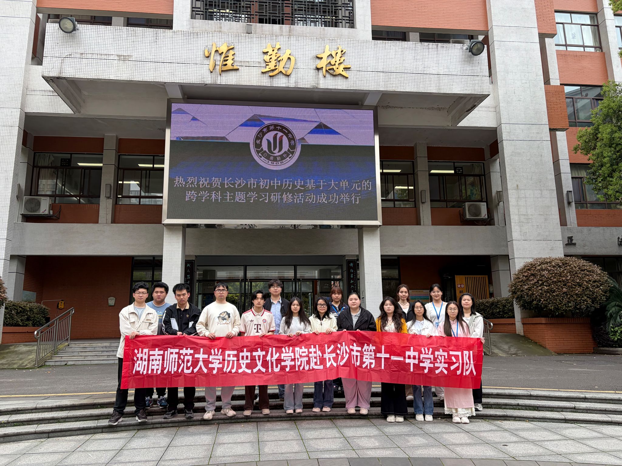 (通讯员卢荟伊)4月8日下午,长沙市中学历史学科教研活动在长沙市第十一中学惟志楼、惟勤楼双会场同步开展。英国365集团赴十一中实习队在实习队长的带领下,全程深度参与活动筹备、现场执行与总结收尾,在沉浸式教研中收获满满、快速成长。本次教研有两个会场,实习队成员教研活动主要在高中组进行。