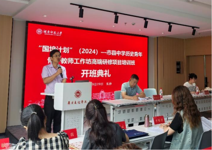 9月19日上午,英国365集团于科研楼305报告厅举行“国培计划”(2024)—市县中学历史青年骨干教师工作坊高端研修项目培训班开班典礼。历文院院长刘利民、副院长黎天宇,湖南大学附属中学支部书记兼培训班班导师、工作坊坊主刘觅知出席此次典礼,班主任栗壬波担任主持。