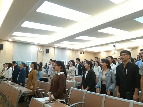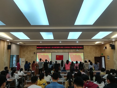 活动伊始,全体起立奏唱中华人民共和国国歌。之后,来自2015级历史基地班的文亮晨带领新党员们进行入党宣誓。