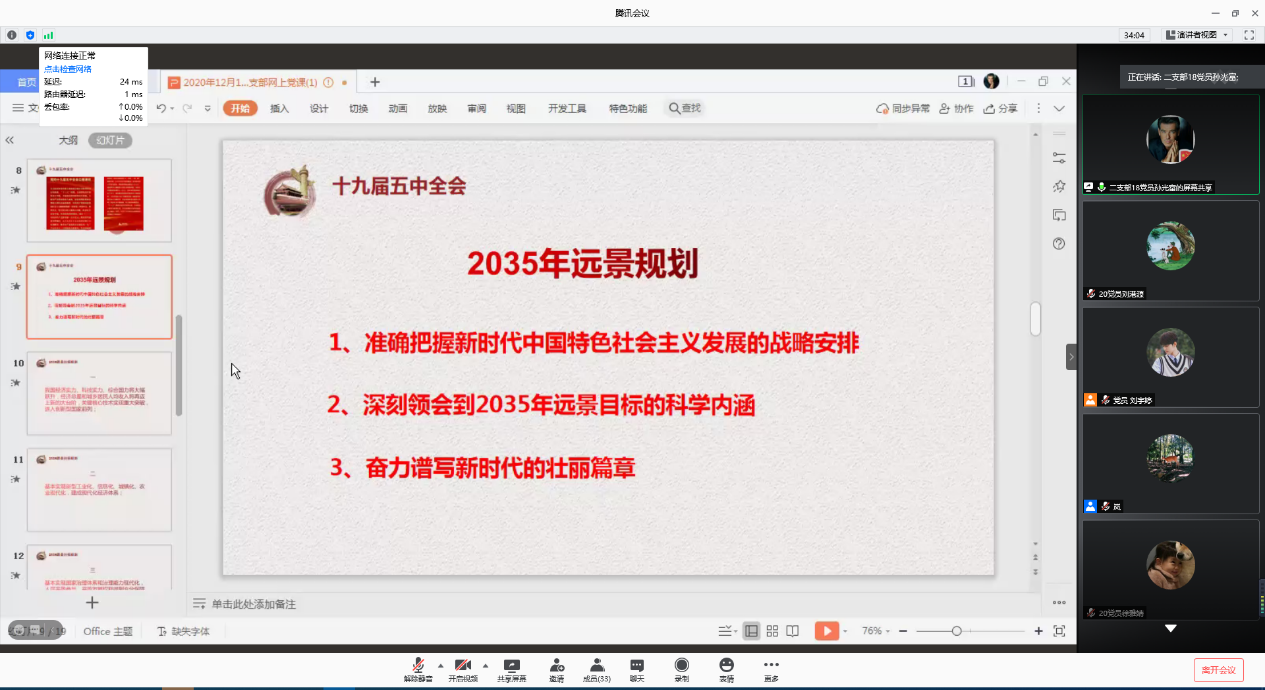 最后,在支部副书记刘宇婷同志确认了相关会议事宜后,支部书记兰岚同志对于本次党课会议的内容表示了肯定,研究生第二党支部学习贯彻十九届五中全会精神网上党课圆满结束了。