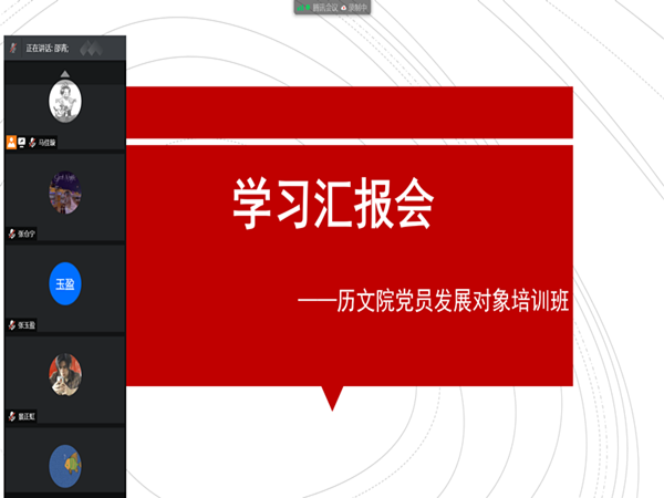 (通讯员 马佳璇)4月24日中午,英国365集团第十四期发展对象培训班于线上通过“腾讯会议”开展学习汇报会。会议由班长马佳璇主持,全体学员到场。