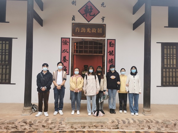 参观学习前,毛丹妮向小组成员介绍本次参观学习的主题和要求,随后小组成员进行参观,在结束参观后全体成员拍照留念,并交流心得。刘书彤认为肖劲光同志是一位久经考验的忠诚的共产主义战士,杰出的无产阶级革命家、军事家,国家和军队的优秀领导人,为中国的革命和社会主义建设事业做出了卓越贡献;王佳欣表示肖劲光前辈功高不居,廉洁自律,始终保持了人民公仆的本色,而我们就生活、学习在肖劲光故居旁,深感我们更应该向伟大的先辈学习,树立远大志向,端正作风,不断加强党性修养,做党的忠诚拥护者;杨铭同学则站在故居外的“入党誓词”下,庄严地举起攥拳的右手,郑重地跟读入党誓词。在场的每一个同学都深深的被肖劲光前辈的精神所感动。活动结束后,组长毛丹妮对本次实践活动进行了总结。