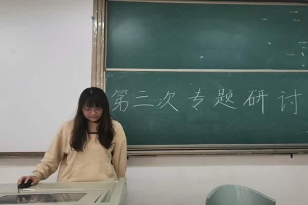 会议伊始,毛丹妮组织同学们围绕主题展开讨论,并发表各自的见解。讨论中杨铭同学的观点得到了大家的一致认同,杨铭表示首先要主动收看、收听习近平同志的各级各类演讲,关注党中央发布的各类新闻,综合个人理解与他人解读,全方位加深个人对思想的理解;其次,要努力学习科学文化知识、提高个人的思想境界与理解能力,更要积极参加各种社会实践,在为人民服务的实践中修炼个人的党性,切实领悟党的思想宗旨;最后,要不断温习党的经典理论,从多个思想体系中汲取营养、总结共性,更好地领悟党的新思想。会议最后,毛丹妮对大家的讨论内容进行总结,鼓励大家继续积极的学习、领会习近平新时代中国特色社会主义思想,为当下、今后的发展做好充足的理论准备。