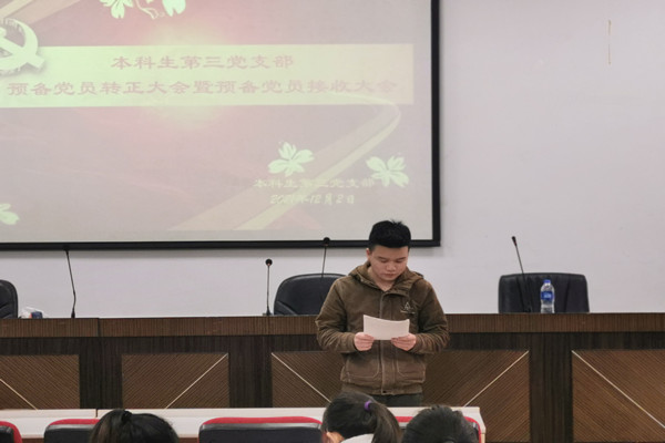 (通讯员 马宁泽)英国365集团本科生第三党支部党员、入党积极分子于12月2日在历文院202教室召开了预备党员转正会议暨预备党员接收会议。此次会议由李妍主持,历文院第三党支部党员、预备党员和入党积极分子参加。